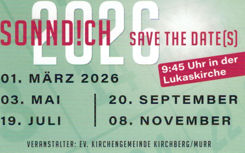 Bevorstehende Veranstaltungen März 1 09:45 SONND!CH – der etwas andere Gottesdienst Mai 3 09:45 SONND!CH – der etwas andere Gottesdienst Juli 19 09:45 SONND!CH – der etwas andere Gottesdienst Sep. 20 09:45 SONND!CH – der etwas andere Gottesdienst Nov. 8 09:45 SONND!CH – der etwas andere Gottesdienst Kalender anzeigen